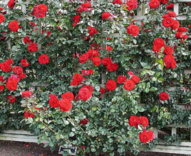 활기찬 붉은 꽃이 특징인 '더블린 베이'는 커다란 꽃과 활기찬 등반 습관으로