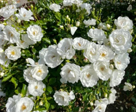 정원 환경에서, 빙산 장미는 많은 순백의 꽃들로 구경꾼들을 사로잡으며 진정한