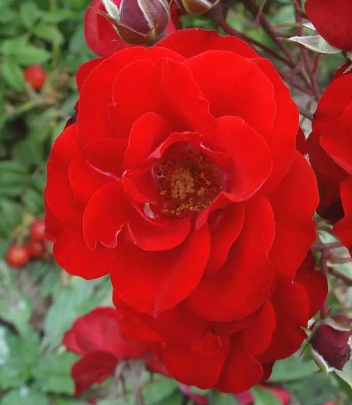 아름답고 회복력이 강한 관목 장미로 활기찬 붉은 꽃과 강인한 본성으로 정원을 장