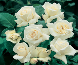 이 하얀 하이브리드 티 로즈는 크고, 순수하고, 향기로운 꽃들을 보여줍니다.