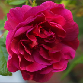 향긋하고 진한 분홍색에서 보라색의 꽃이 피는 잡종 루고사 장미. '한사'는