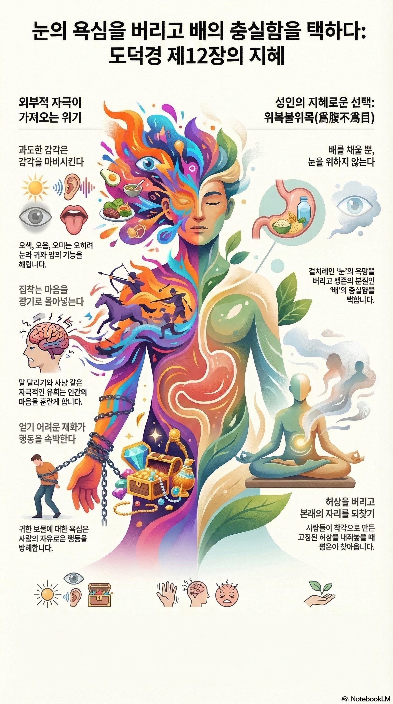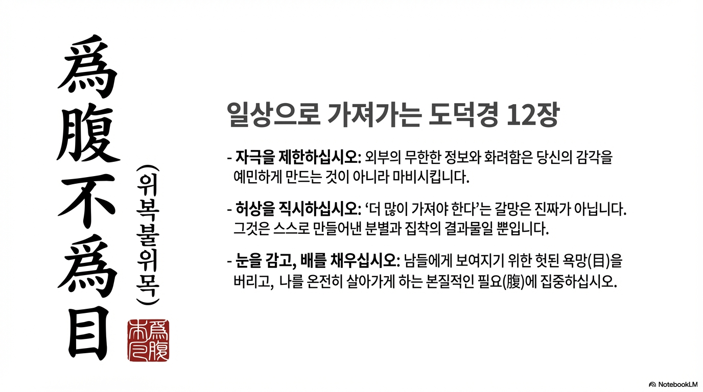 道德經 제 12장. 검욕(檢欲), 목복(目腹)