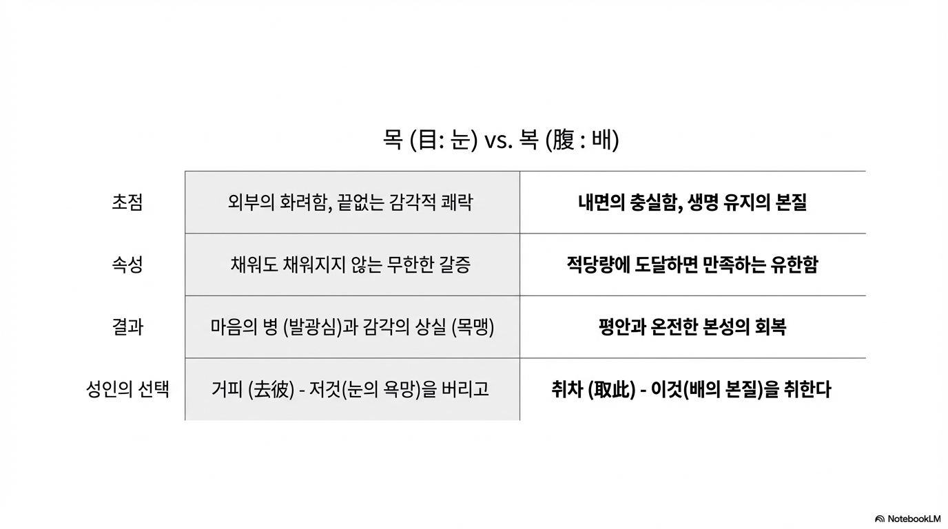 道德經 제 12장. 검욕(檢欲), 목복(目腹)