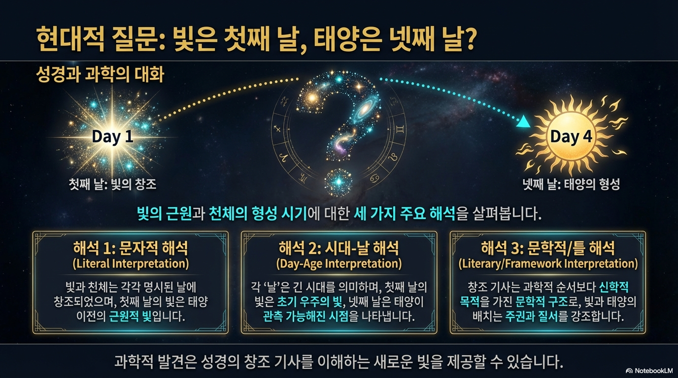 이 본문은 단순한 천체 생성을 넘어, 고대 근동의 배경과 신학적 의미가 깊게 깔려 있