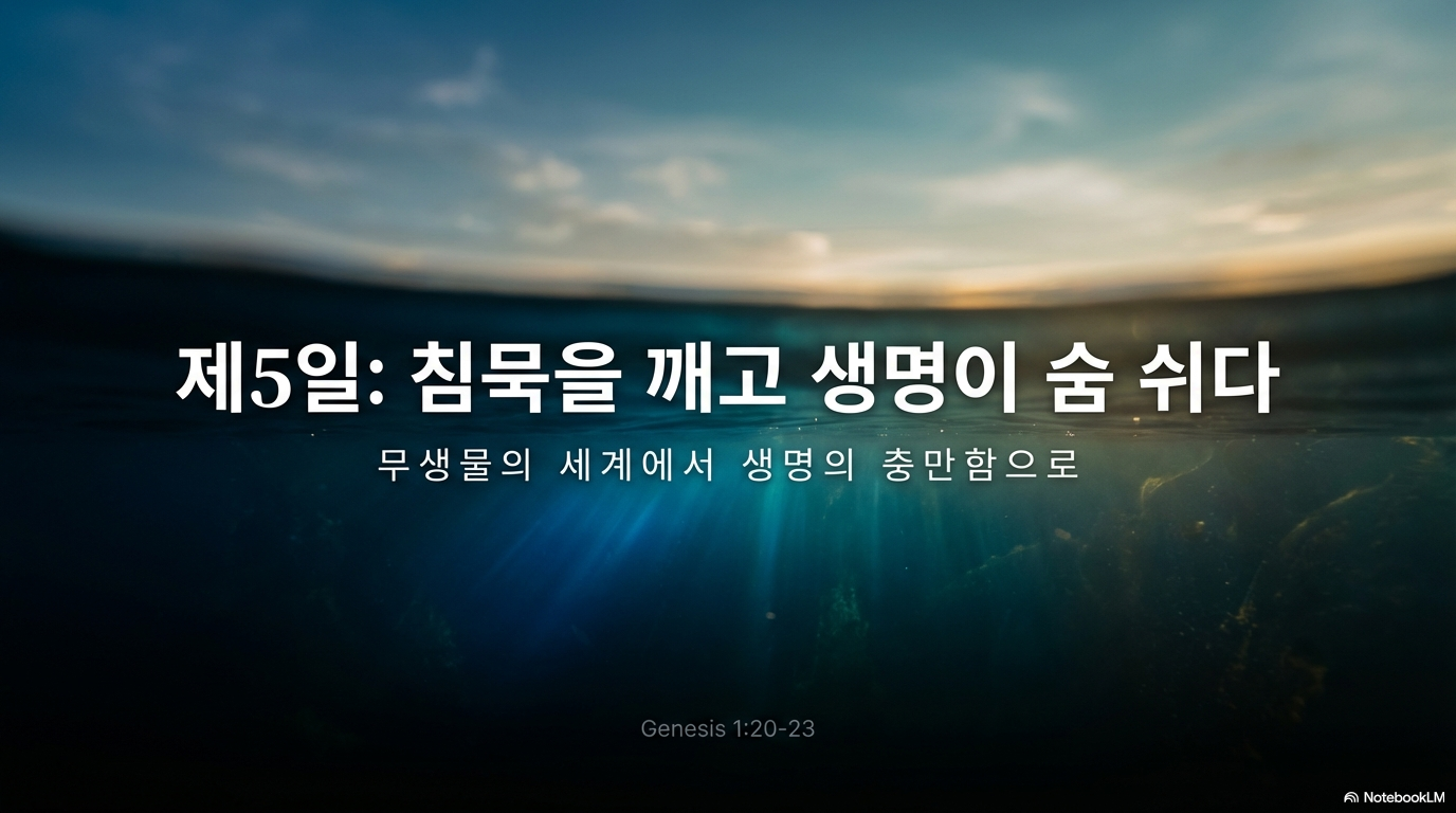 ■ 문학적 구조: 다섯째 날의 바다와 하늘 생물은 둘째 날에 나뉘었던 '궁창 위의 물과