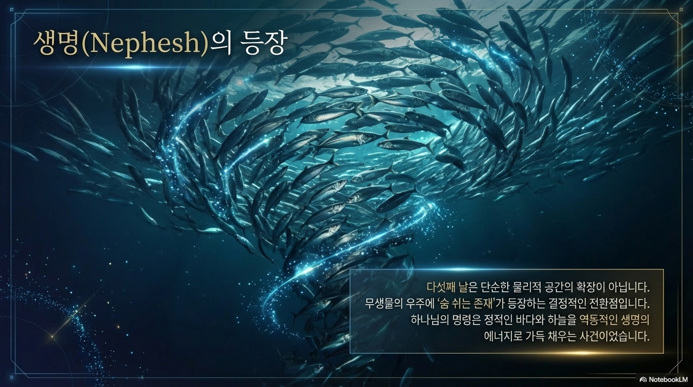었다면, 넷째 날부터 여섯째 날은 그 틀을 '채우는(Filling)' 과정입니다. 다섯째 날은 무