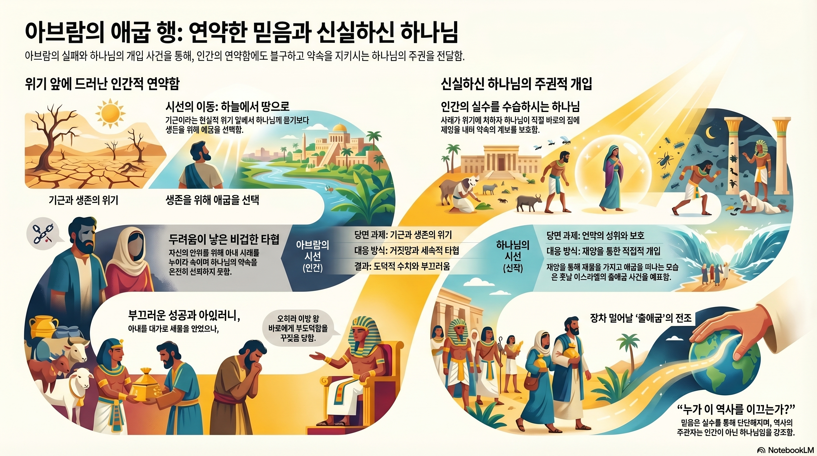 ■ 인간적 불신앙: 아브람은 기근이라는 현실적 위기 앞에서 하나님께 묻기보다 애굽