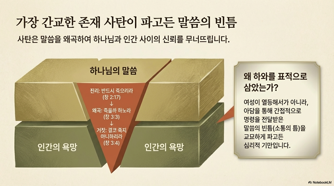창세기 3장은 인류 최초의 죄와 타락에 관한 중요한 본문으로, 선악과를 둘러싼 인간과