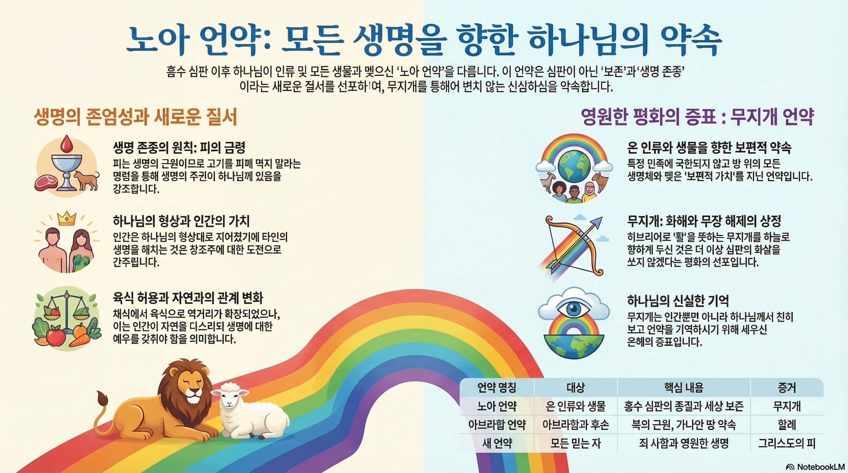 적인 약속인 '노아 언약(Noahic Covenant)'을 다루고 있습니다. 이 언약은 특정 민