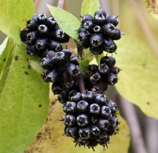 가시오가피의 열매는 작고 검은색으로, 가을에 성숙합니다.