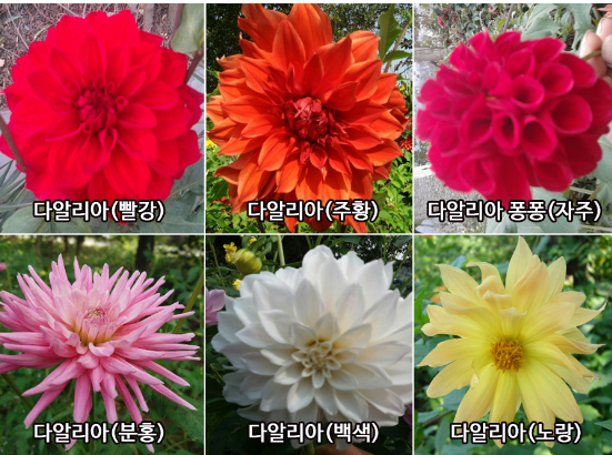 양한 종류의 꽃들이 포함되어 있으며, 그 중에서도 다알라아는 여러 품종으로 나뉘
