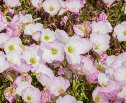 * Oenothera speciosa는 낮은 키에 자생하며, 분홍색 꽃을피우는 미니멀한 형태