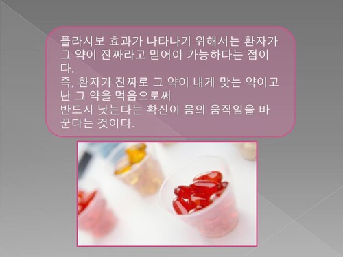 플라시보 효과는 단순히 약리적인 효과가 없는데도 불구하고 환자가 약을 복용했