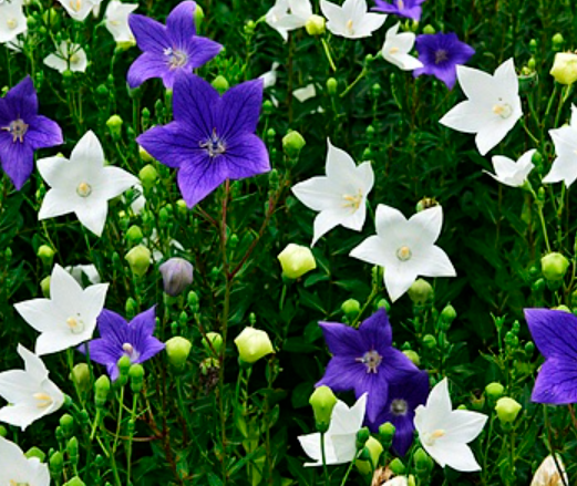 도라지에는 여러 품종이 있으며, 각각의 꽃은 크기와 색상에서 차이를 보입니다.