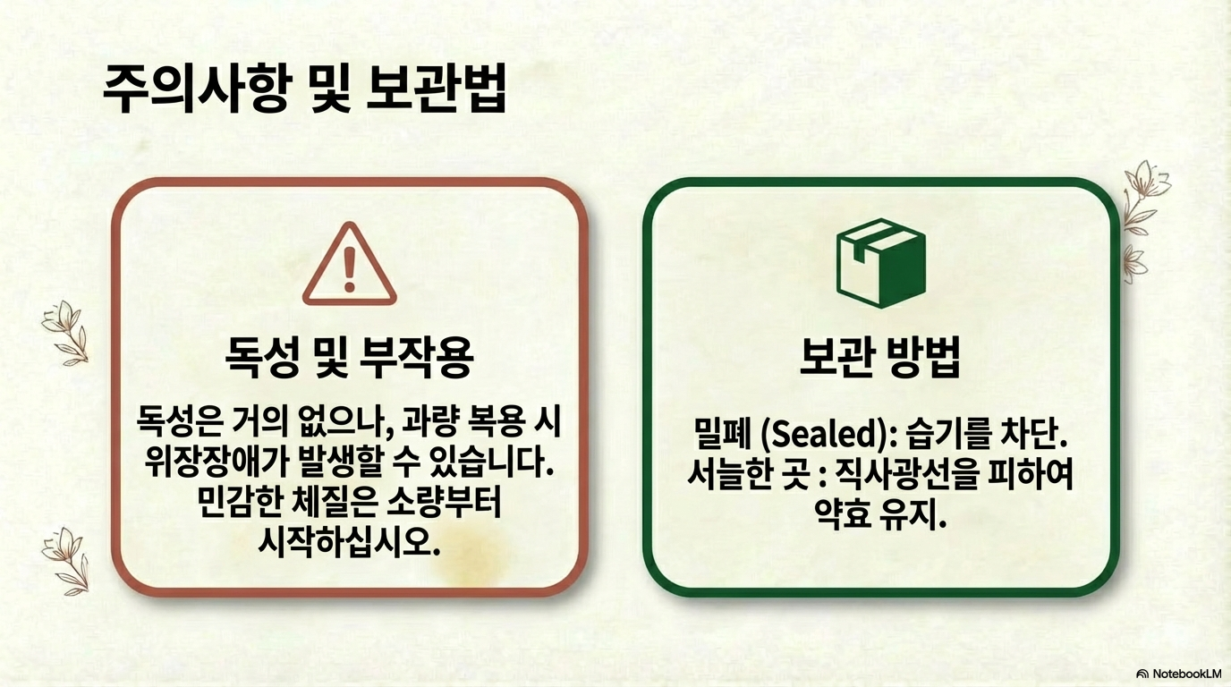장기복용 시 특별한 부작용 보고는 없으나, 건강 상태에 따라 전문 한의사와 상담 후