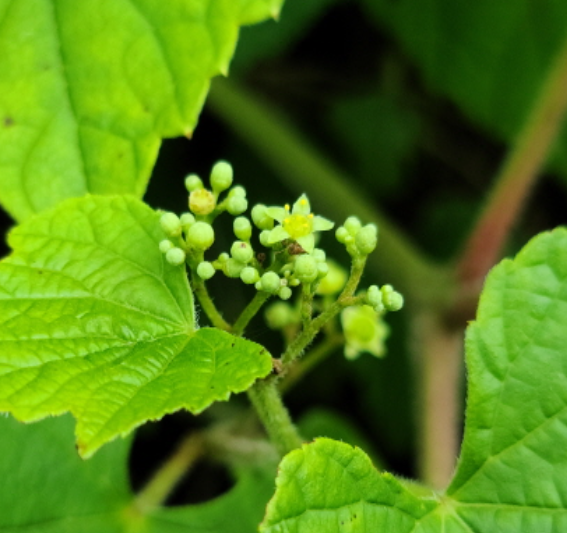 불규칙한 톱니가 있습니다. 모양이 머루 잎과 비슷합니다.