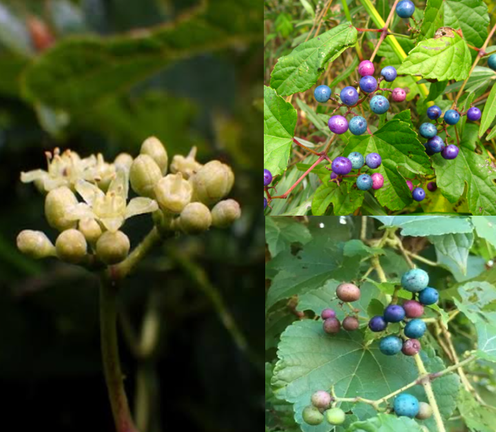 학명은 *Ampelopsis brevipedunculata*이며, 영문명으로는 porcelain berry 등