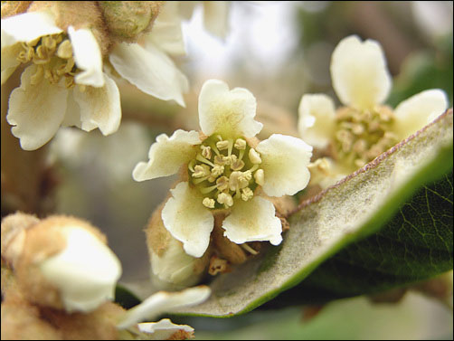 비파꽃은 비파나무 (Eriobotrya japonica)에 속하는 꽃으로, 장미과(Rosaceae)