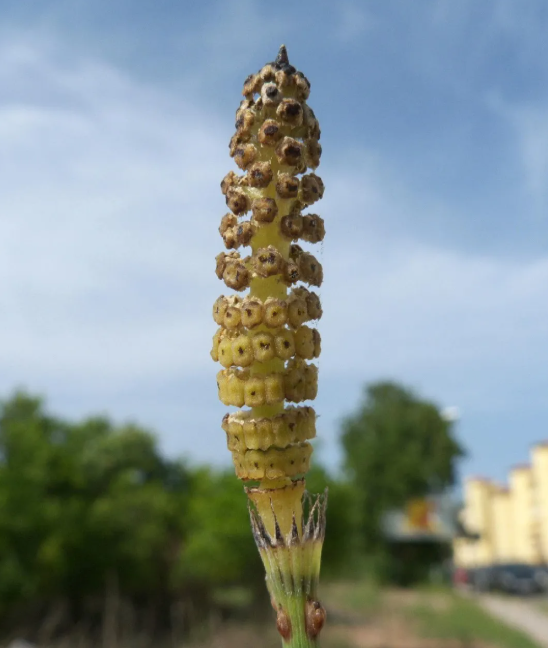 개속새는 꽃이 피지 않는 양치식물입니다. 대신 포자로 번식하며, 줄기 끝에 포자낭수