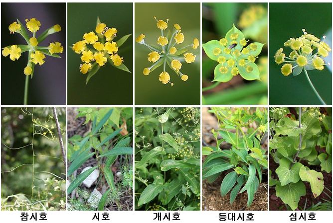 시호는 북시호(*Bupleurum chinense*)와 남시호(*Bupleurum falcatum*) 등으로 구분