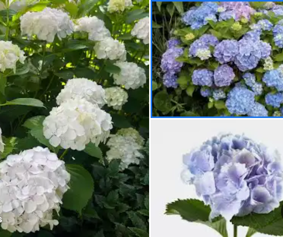 주로 파란색, 분홍색, 흰색으로 나타납니다. 이 꽃은 토양의 pH에 따라 색상