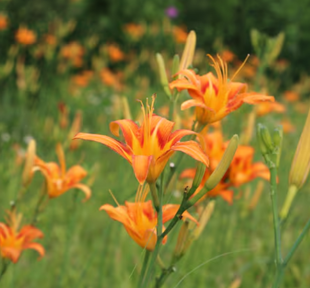 Hemerocallis fulva: 일반 원추리로, 주로 주황색 꽃을 가지고 있으며, 여름철에