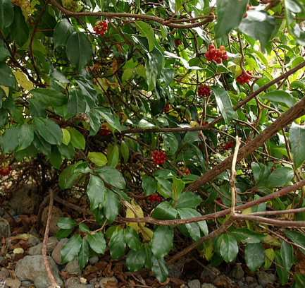 남오미자는 오미자과에 속하는 상록 덩굴성 목본식물로, 남쪽 지방에서 주로 자랍니다.