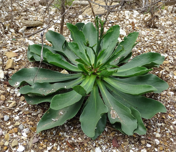뿌리에서 뭉쳐나와 비스듬히 퍼지는 형태입니다. 잎몸은 길이 4~15cm, 너비 3~8cm