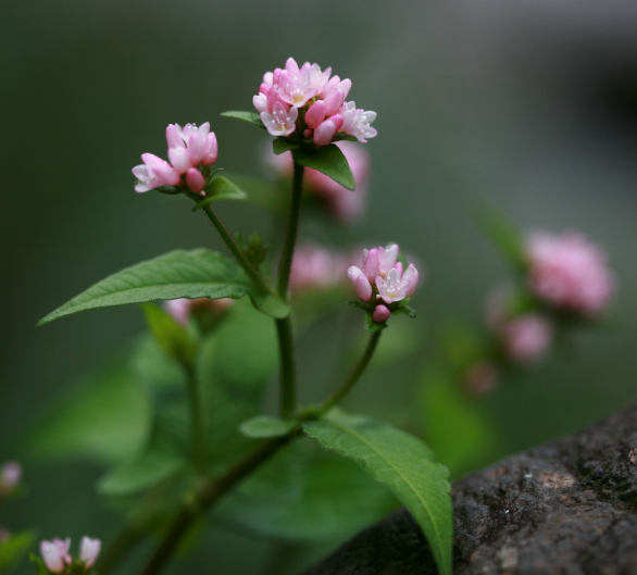 8월부터 10월까지 잎겨드랑이에 모여서 피는 작고 귀여운 분홍색 꽃은 다섯 장의 꽃잎