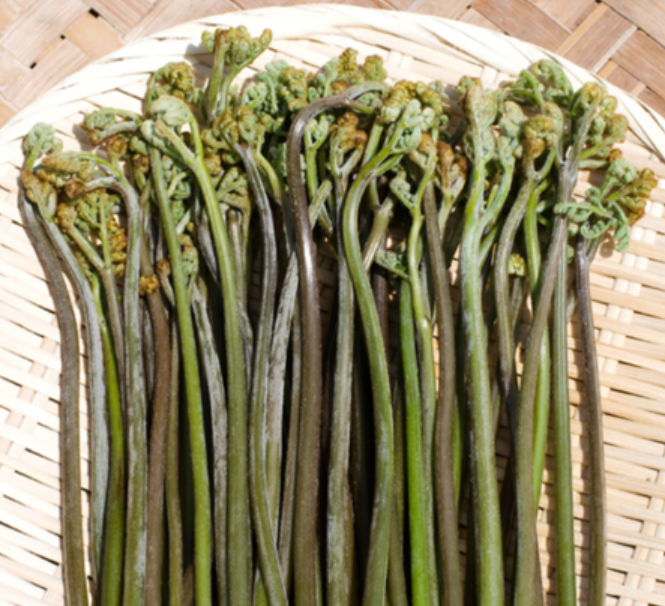 순이 잎으로 완전히 펴지기 전, 갈고리 모양으로 말려 있을 때 채취하는 것이 가장 부드