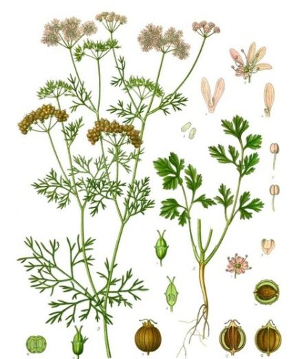 고수(Coriander), 호유(胡荽), 호수자(胡荽子), 호수근(胡荽根)