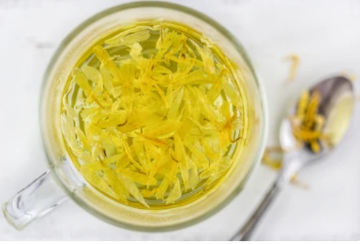 칼렌둘라 티 자체에는 말린 칼렌둘라 오피시날리스 꽃잎을 뜨거운 물에 담