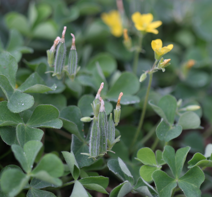 씨앗이 터져 나오는데, 고양이가 건드리면 씨앗이 터져 나오는 특징 때문에 '괭이밥'이