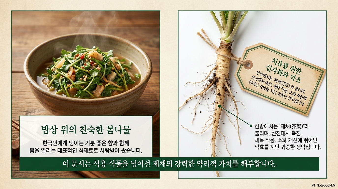 냉이(제채)는 십자화과에 속하는 봄철 대표 나물로, 한국을 포함한 한반도와 동아시아