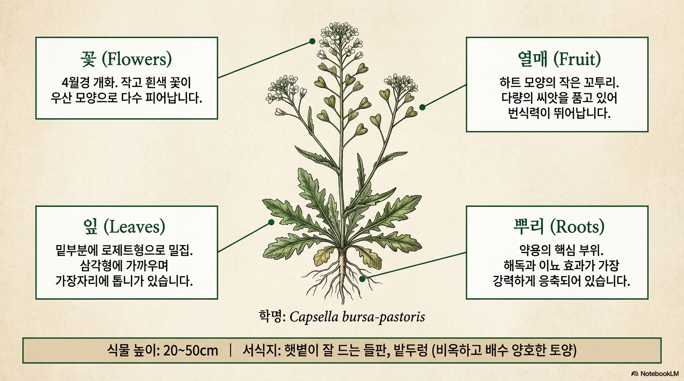 식물명은Capsella bursa-pastoris로 학계에서 분류됩니다.