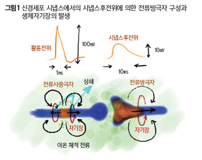 련이 있습니다. 전류가 흐를 때 주변에 자기장이 형성되며, 이는 다시 신경 세포
