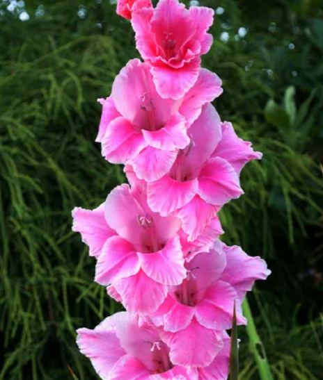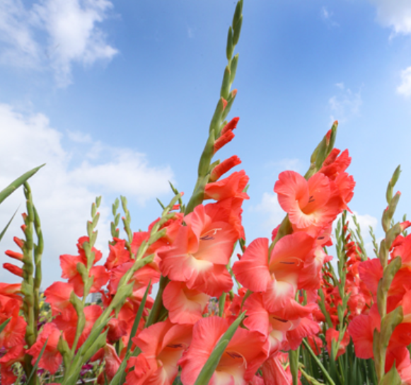 글라디올러스는 품종에 따라 다르지만, 보통 60cm에서 150cm까지 자라며 곧게 뻗은