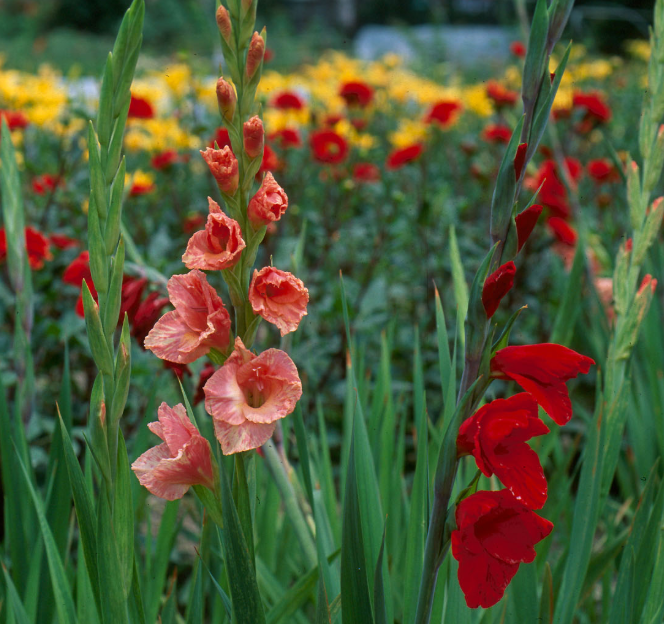 글라디올러스는 남아프리카 원산의 구근식물로, 우리나라에서는 관상용과 약용으로