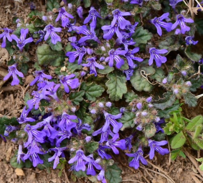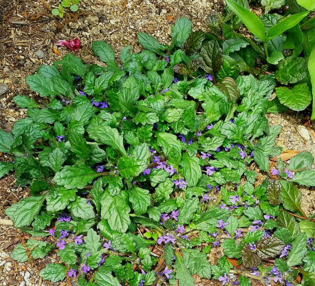 금창초는 땅에 거의 붙어서 기는 형태로 자라거나, 꽃대가 올라오는 시기에는10cm에