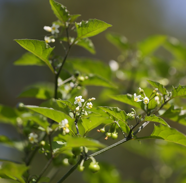 까마중의익지 않은 푸른 열매와 잎에는 솔라닌(solanine)이라는 독성 물질이 과량 함유