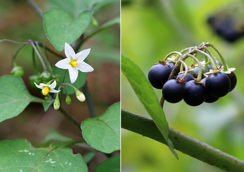 까마중의익지 않은 푸른 열매와 잎에는 솔라닌(solanine)이라는 독성 물질이 과량 함유