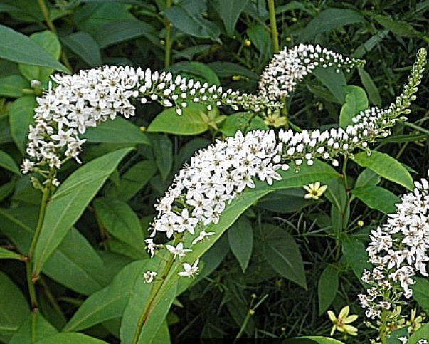 입니다. 주로 산과 들의 습한 곳이나 물가에서 자라며, 길게 뻗은 흰색 꽃차례가 특징입