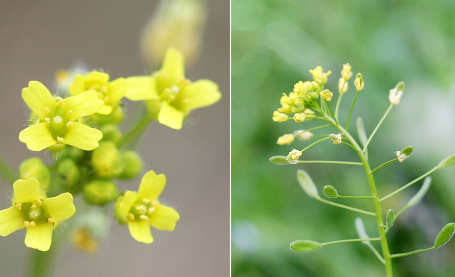 이른 봄부터 늦봄까지 작은 노란색 꽃이 핍니다. 십자화과 특유의 꽃잎 4장이 십자가