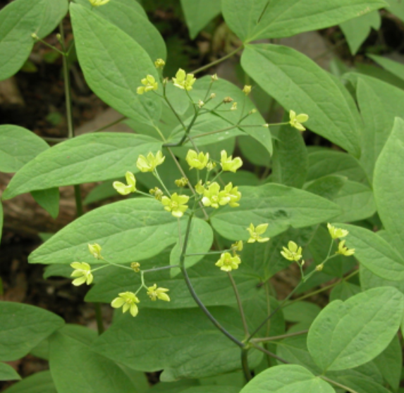 서 핍니다. 꽃은 연한 노란색 또는 연한 녹색을 띠며, 꽃잎은 없고 꽃받침 조각이 꽃잎처