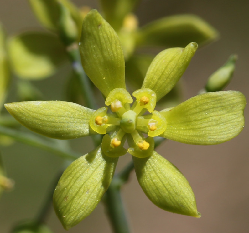 꽃은 5월에서 7월 사이에 피며, 줄기 끝이나 잎겨드랑이에서 여러 개의 작은 꽃이 모여