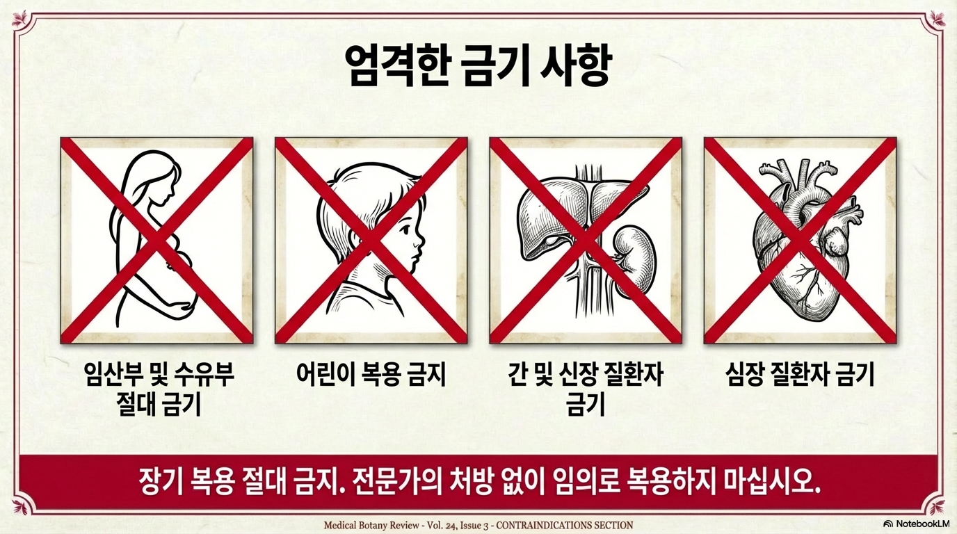 법제 과정을 거치거나, 소량만을 사용해야 합니다. 장기 복용은 절대 피해야 하며, 임