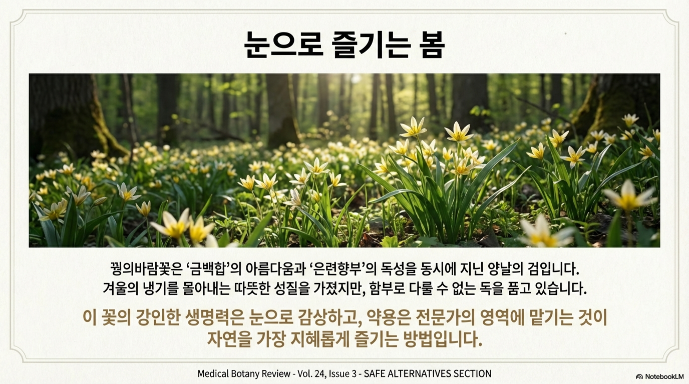 꿩의바람꽃은 독성이 있으므로, 1회 사용량은매우 소량으로 제한되어야 합니다. 일