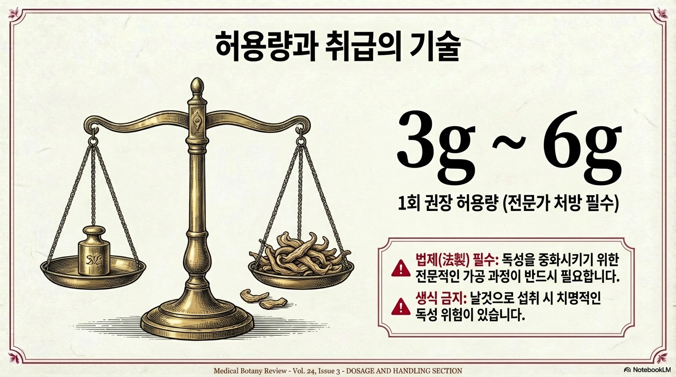 독성을 가진 약초이므로 채취 시에도 각별한 주의가 필요합니다.