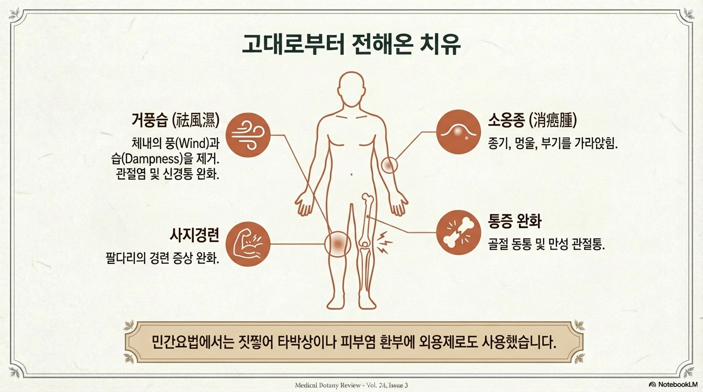 ■ 거풍습(祛風濕):체내의 불필요한 바람(風)과 습기(濕)를 제거하는 효능이 있습니다.