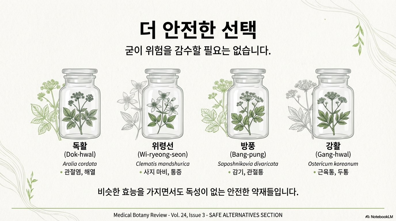 독성이 없는 안전한 약재들이 많으므로, 이를 대신하여 활용하는 것이 좋습니다.